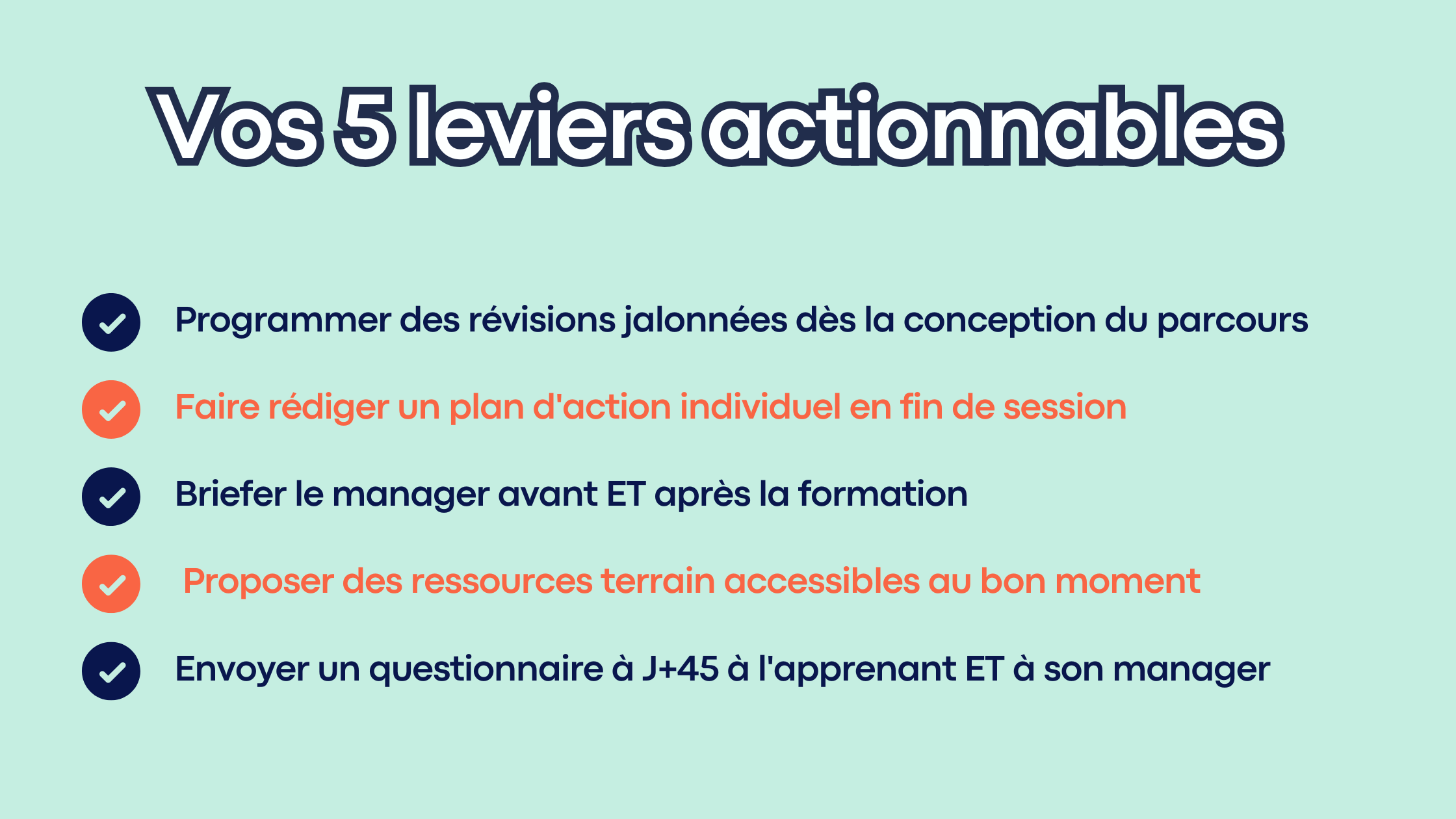 Mais nous avons une bonne nouvelle : le transfert des acquis se pilote et s’évalue grâce à 5 leviers. Découvrez lesquels !